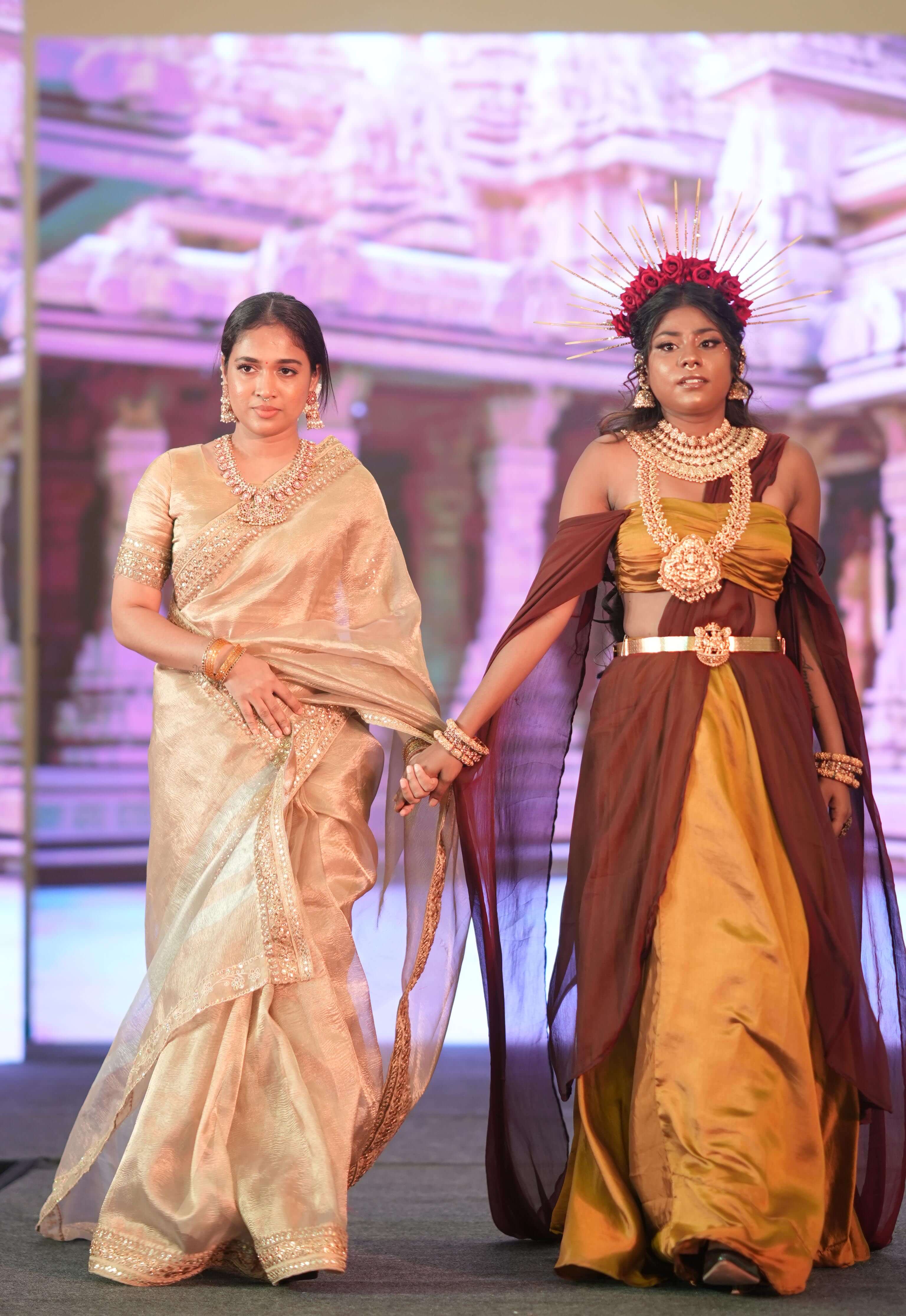 From draping demonstrations to stage glamour, experience the vibrant moments captured during the grand bridal celebration.